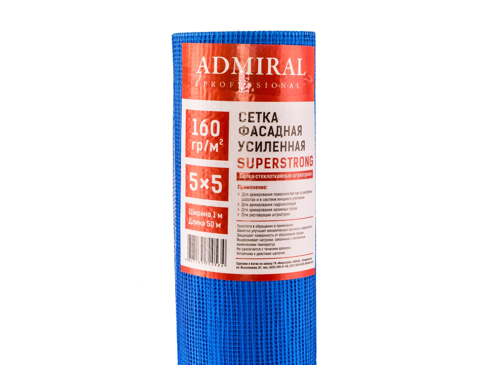 Сетка малярная 160г фасадная усиленная 5*5 ADMIRAL 1м*50 м(синяя) PREMIUM